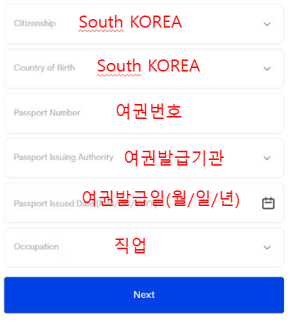 여기부터는 한글로 나오니 작성하기 편하실거에요.