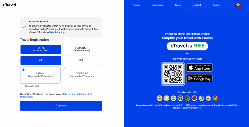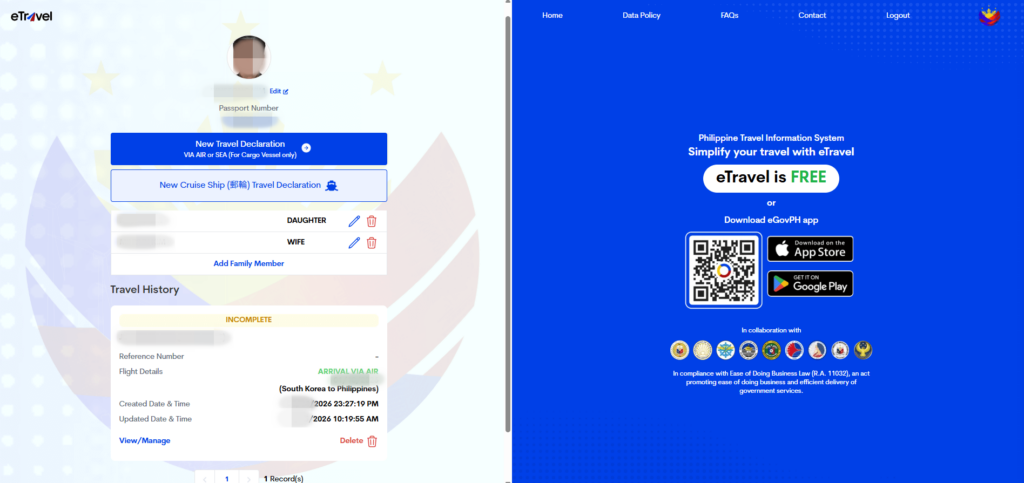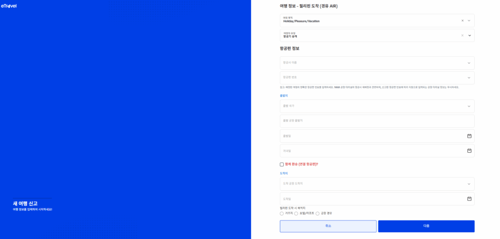 필리핀 이트래블은 필리핀 정부에서 운영하는 온라인 입국 신고 시스템입니다. 쉽게 말해 ‘스마트폰이나 PC로 미리 작성하는 입국 신고서’라고 생각하시면 됩니다.