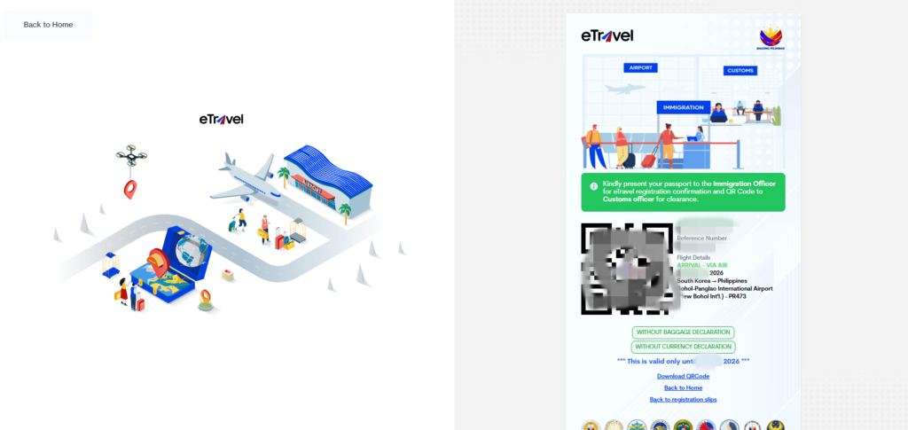 필리핀에 도착해서 줄을 길게 서지 않으려면, 한국에서 미리 등록하고 받은 QR코드를 보여주기만 하면 됩니다. 등록은 무료이니, 돈을 요구하는 가짜 사이트에 속지 않도록 꼭 주의하세요!