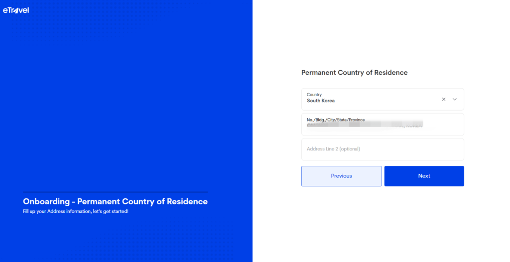 국가명은 South Korea를 선택하고, 주소는 영문으로 적으셔야 해요. 번지주소/동/구/시.도명 순으로 적으시면 됩니다. 영문명은 그냥 발음나는대로 적으시면 되요.